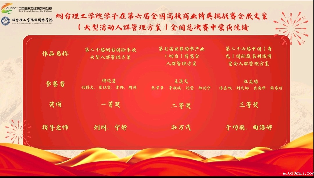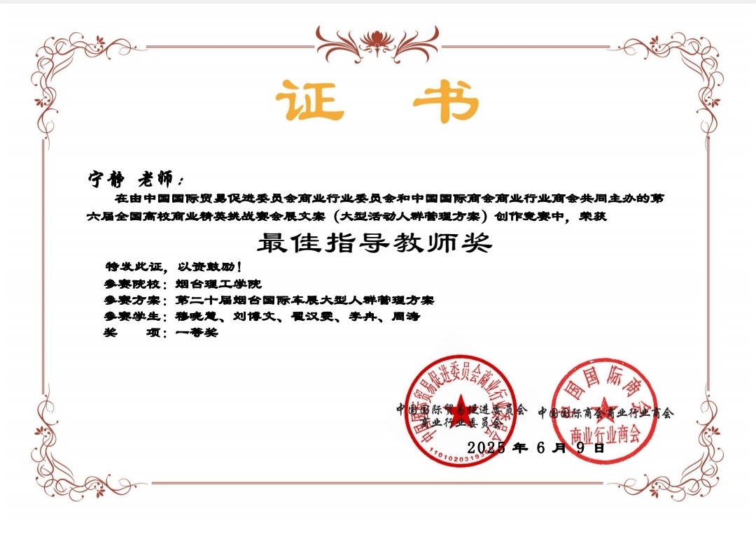 在激烈角逐中,外国语学院派出的三支参赛团队表现优异,分别荣获国家一等奖1项、二等奖1项、三等奖1项的佳绩。学院领导在学生备赛过程中高度重视,精心部署,商务英语系全力配合,通力协作,全力做好参赛方案设计、技术和各种保障支持。教师指导团队(刘同、宁静、于巧丽、曲海婷、孙万茂)团结协作、细致指导,为参赛学生提供了坚强保障。参赛同学们不畏挑战、全情投入,展现出卓越的综合素养与创新能力。